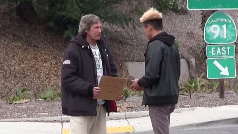 هل تعرف ما يُمكن أن يفعله متسول أو مشرد ببضعة نقود أعطيتها له؟ هذا هو السؤال الذي سعى الناشط الأمريكي "جوش باليرلين" للإجابة عليه. فعلى قناته بموقع «يوتيوب»، التي تحظى بأكثر من 700 ألف متابع، أوضح الناشط الساخر أنه اختار أحد المشردين في مدينة لوس أنجلوس الأمريكية عشوائيًا ليمنحه 100 دولار، مشيرًا إلى أنه تتبع تحركات هذا المشرد، الذي يحمل اسم توماس، عبر كاميرات خفية، لتصيبه دهشة كبيرة من تصرف المشرد الذي جاء على عكس المتوقع. حيث توجه الرجل إلى أحد المتاجر القريبة، وهنا ظن "جوش" أنه سيشتري لنفسه شيئًا ما، لكن الأمر لم يكن كذلك، فكل ما فعله توماس هو شراء أنواع مختلفة من الطعام والتوجه مباشرة إلى حديقة مجاورة، حيث يتجمع العديد من المشردين والمحتاجين، كي يعطيهم ما اشتراه من أغذية. ووصل عدد مشاهدي الفيديو إلي 2 مليون في 24 ساعة ووصل العدد الأن إلي قرابة العشرين مليون مشاهدة