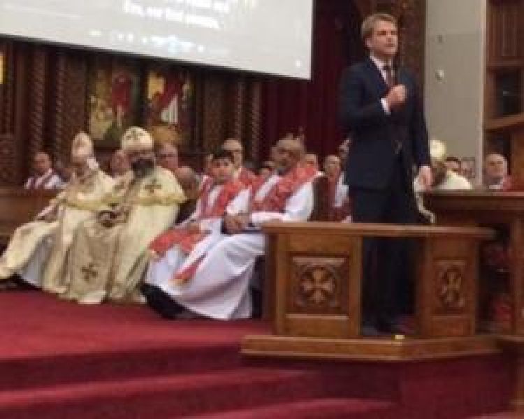 جود نيوز الكندية: علي غرار الحضور الأعلي بمصر، وحضور الرئيس عبد الفتاح السيسي بالكاتدرائية المرقسية بالعباسية حيث مقر قداسة البابا تواضروس الثاني، وعلي بُعد الاف الأميال كان هناك حضور رفيع المستوي جداً بكنيسة السيدة العذراء والبابا اثناسيوس بمسيسوجا حيث مقر نيافة الانبا مينا أسقف غرب كندا. فقد حضر عدد كبير من الشيخصيات السياسية والعامة وعلي كل المستويات، الحكومة الفيدرالية وحكومة المقاطعة وعمدة المدينة. وبعد القاء الكلمة المسجلة لقداسة البابا تواضروس الثاني، القي الأب القمص "انجيلوس سعد" كلمة وقال بينما نحن سعداء اننا نعيش في كندا التي تحمي لنا حرية العقيدة والعبادة، لا ينبغي أن ننسي اخوتنا الذين لا يتمتعون بذلك الحق كما يحدث مع الاقباط في ليبيا علي سبيل المثال. وحضر وزير حكومة المحافظين، "كريس الكسندر" وزير الهجرة والجنسية والذي حضر ممثلاً عن رئيس الوزراء "ستيفن هاربر" ونقل تهنئة الحكومة ورئيسها للاقباط، وقالت "كاثلين وين" حاكمة مقاطعة اونتاريو ، أنها جاءت لتهنئة الأقباط، وأضافت "وين"، نسعد بأن يكون مقر نيافة الانبا مينا هنا في "اونتاريو" فبالرغم أنه نيافته أسقف غرب كندا بأكملها، مما يدل علي اهمية تلك المقاطعة. وحضر رئيس الحزب الليبرالي الكندي "جاستين ترودو" والذي أكد علي أن حضور هذا العدد من قيادات الاحزاب بالقداس دليل علي قوة الجالية القبطية في كندا. وقالت عمدة مدينة مسيسوجا "بوني كرومبي" ، انها سعيدة بمشاركة الاقباط بهذا الإحتفال وأن العام الماضي كان عام سعيد لزيارة قداسة البابا الي كندا وشكرت الاقباط علي وقوفهم معها وخلفها لتفوز بهذا المنصب في أكتوبر الماضي. وقال "اندرو كاش" والذي جاء ممثلاً لرئيس حزب الديمقراطي الجديد، أنه يشارك الاقباط قيمهم وايمانهم بالعدالة والمساواة. وشارك بصلاة القداس، السيدة "غادة ملك" المرشحة السابقة بمدينة مسيسوجا ، و المهندس "شريف سبعاوي" عضو الحزب الليبرالي