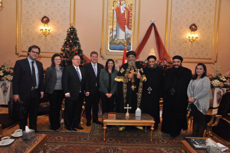 جود نيوز الكندية: قام وزير الخارجية الكندي "جود بيرد" بزيارة المقر البابوي وتقابل مع قداسة البابا تواضروس الثاني، ورافقه في الزيارة السفير الكندي بالقاهرة وكانت جلسة ودية وللتعارف بين وزير الخارجية وقداسة البابا تواضروس. ودار الحديث بين البابا تواضروس والوزير الكندي حول احوال مصر والتي اكد فيها قداسة البابا أن الامور في مصر تسير إلي الافضل وأن استقرار الامور في مصر يتزايد يوماً بعد يوم. وحضر اللقاء القمص انجيلوس سعد راعي كنيسة السيدة العذراء والبابا أثناسيوس بمسيسوجا، والقس انجيلوس اسحق سكرتير قداسة البابا