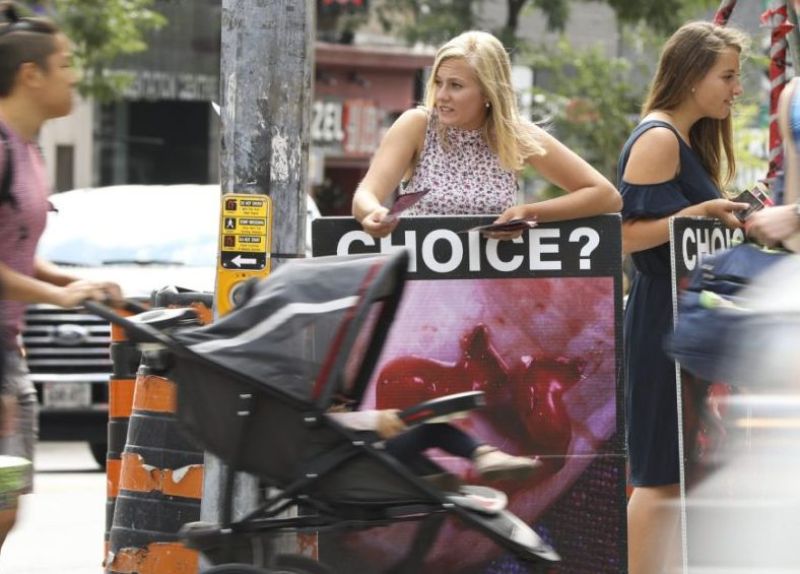 تقدمت مجموعة من المسؤولين العموميين بالتماس الي حكومة المقاطعة لرفع دعوي قضائية تمنع توزيع أو وضع صور مروعة مناهضة للاجهاض في المدينة، وكان أعضاء في مجموعة مناهضة للاجهاض قد قاموا بتوزيع مئات الالاف من المنشورات داخل صناديق البريد تسأل الناس عن معلوماتهم عن الاجهاض وتقدم لهم اجابات ومعلومات عنه مع صور مروعة لأجنة مقطعة ، وحمل أعضاء الجماعة أيضا هذه الصور في لافتات كبيرة عند تقاطع الطرق المذدحمة ليعلنوا رأيهم للجميع. وقالوا نحن نفعل ذلك حيثما كان هناك ازدحام وحيث يوجد شباب مراهقين حتي ندخل معهم في حوارات وخاصة مع هؤلاء الذين قد يفكرون في الاجهاض أو يعرفوا أحد يفكر في الاجهاض ولابد أن نعرفهم الحقيقة ونريهم الصور ، ولكن جماعة منهم مستشارين في مدينة تورنتو وعضوة في مجلس أدارة مدارس تورنتو وعضو البرلمان عن منطقة "دان فورث" بيتر تابونس كتبوا التماسا الي المدعي العام في المقاطعة ياسر نقفي ليلتمس أمر قضائي ضد هذه المضايقات، وقال عضو البرلمان بيتر تابونس أن الناس غاضبون من هذه الصور التي تعتبر هجوما عليهم وقالت لوري ستارلينج من جامعة كويين ان علي النائب العام والمجتمع كله اتخاذ إجراءات لوقف هذا ، وقال عضو البرلمان بيتر تابونس علي الرغم من ان كثير من الاطفال والنساء الحوامل أشتكوا من وجود هذه المنشورات والصور ضمن بريدهم الخاص وهم يعترضون علي هذا ولكن حرية التعبير متاحة ومحمية للجميع ولكن قلقنا هو حماية الاطفال والبالغين من رؤية هذه الصور.